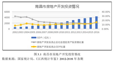 近三年来,南昌国内生产总值年均增长9.11%,全社会固定资产投资年均增长18.91%。由此可见,南昌的投资过于强劲,房地产投资占总投资的重要部分,促进了南昌的经济发展,但同时,南昌的经济发展也过于依赖房地产业。随着人们消费水平的提高和房价的飙升,人们期望房地产投资获得高回报。因此,大量资金投入房地产市场,为泡沫危机奠定了基础。