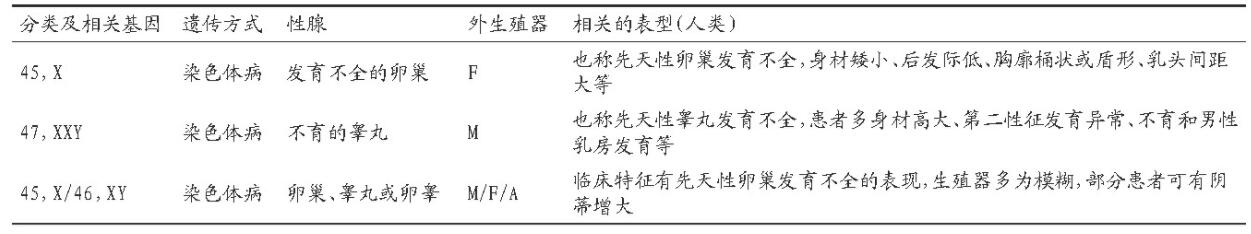 2.1性染色体DSD的主要类型和临床表现见表1。
