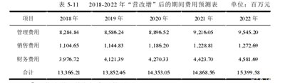 (4)期间费用预测①以“营业税增加”后的期间费用预测为主,管理费用预测为主。