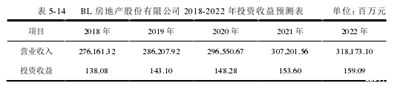 第二,预测房地产企业收入。通过研究分析发现,2014年至2017年,BL房地产有限公司的房地产收入将依次增加。因此,预计从2018年到2022年,BL房地产有限公司的房地产业务收入将平均每年增加25亿元人民币。