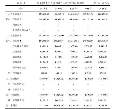 (1)“业务增长”后净利润预测基于以上分析,可以得出2018-2022年“业务增长”后BL房地产有限公司净利润,如下表5-15所示。(本文采用的企业所得税税率为25%)