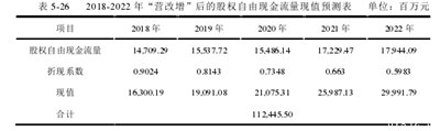 基于以上分析,可以得出2018年至2022年“从业务转向增加”后,BL房地产有限公司股份自由现金流的现值,如下表5-26所示。