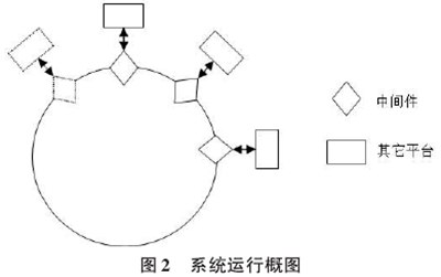 从2.1中我们知道中间件是一种没有服务器节点的中间件,整个软件系统的运行模式如图2所示。