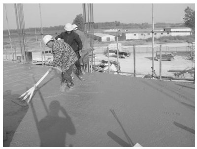 混凝土振动后浇注。通过振捣,混凝土中砂石、水泥等原材料分布均匀,去除空气体和水分,确保混凝土密实。振捣完毕后,混凝土将全部填充到模板中,以保证整个建筑的质量。然而,振动过程应该是适度的。如果混凝土下沉速度减慢,并且在振动过程中没有气泡产生,则振动是适度的。振动过大和不当会导致混凝土石下沉、泥浆流失和质量不合格。根据工作量和混凝土类型,振动主要有两种类型:人工振动和机械振动。无论采用哪种振捣方法,插入点应均匀布置,振捣棒应插入下层混凝土中。只有这样,才能避免混凝土分层中的裂缝,并且每次振动时间应保持在约20秒,以便混凝土的边缘能够振动,如图4所示。