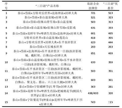 以泰山为龙头,以新的旅游项目为基础,以“中华泰山 天下泰安”为品牌,在2013年,泰安市旅游发展委员会推出24条“三日游”精品线路,其中15条含“泰山”的“三日游”旅游线路,说明“大泰山”旅游圈初步形成。如下表5-3所示: