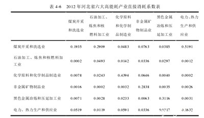根据2015年河北省六大高耗能行业的直接消耗系数,煤炭采选行业的直接消耗高达每万元产值2784元,化工原料和化工制造、电力、火电生产和供应的直接消耗分别为272元和421元。