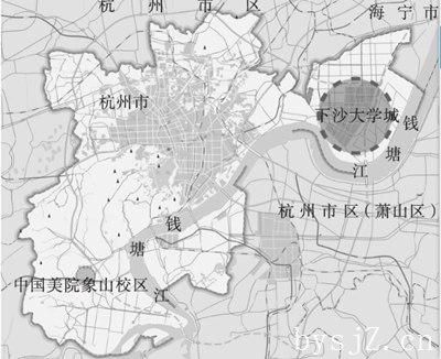 在选址方面,王叔等人放弃了位于杭州北部地势平坦、交通便利的政府规划的大学公园,选择了杭州南部的山的东缘和香山周围的土地(见图2)。王叔对景观环境更感兴趣——“按照中国文化的传统,环境中的景观在建筑选址中比建筑更重要”[1。基于此选址,象山校区获得了独特的自然环境,建筑师也拥有丰富的展示空间空。