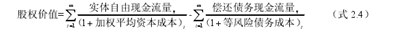 (3) 实体现金流量模型 实体现金流量是公司产生经营现金流入扣减维持公司正常生产经营所必须成本费用及发展需要的支出现金流后剩余现金流量,可以由债权人和股东使用支配的最大现金流。因为支付给债权人的利息包含在实体现金流量中,是债权人和股权投资人都可以分配到的现金流,所以折现率必须考虑债务价值和权益价值结构,该模型的具体形式为: