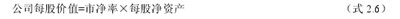 (2)市净率模型 市净率一般又称P/B倍数,是指每股股价与每股净资产的比值,市净率估值的模型表述如下: