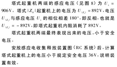 本发明用于安装感应高压电力收集和释放系统,将施工感应高压电力保护收集和释放结合起来,可以提高施工塔吊在电磁辐射感应高压电力环境下的工作安全性和可靠性,通过塔吊的接地线将感应高压电力引入大地,消除感应高压电力, 消除了感应高压电击事故的可能性,保证了施工现场人员的人身和财产安全,促进了施工感应高压电力安全防护技术的发展和进步。