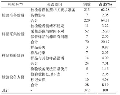 (1)从研究结果可以看出,临床医学考试的差错率为22.8%,其中主要原因是考生没有按照相关要求进行准备。受试者来自不同的年龄、不同的性别、不同的社会阶层和不同的文化背景,因此他们对相关测试要求的理解也不同[5】。当医务人员没有对考生进行足够的教育,并根据考生的情况进行解释时,很容易导致考生产生误解,并未做好相关准备。例如,大多数人认为只有早上空腹部需要检查,他们不知道更特殊的检查。年纪较大的受试者通常会因为记忆力和理解力差而忘记相关的准备要求。此外,不同的体质也会影响考试成绩。例如,新生儿的各种器官都处于生长发育阶段,因此红细胞、白细胞和血红蛋白的指标都高于正常人,由于体内激素的不同,男女检查结果也会有所不同[6,7]。(2)研究结果表明,采集地点和时间不正确是医疗检查错误率的第二大原因,占15.20%。这是由于收藏家的专业素质不合格。作为医学检验样品的领导者,收集者应该非常清楚样品的相关知识。众所周知,人体内每一种元素的含量都不是恒定的,随着身体的运动、饮食和休息会发生不同程度的变化[8]。何时收集和测试质量最好的样品属于收集者应该知道的专业知识。如果采集者不掌握这方面的知识,不仅会影响采集样本的质量,还会降低考生的配合和依从性。(3)从研究结果中还可以看出,样品存放阶段和检验设备也是检验误差的原因。测试设备不能使用。医务人员误将样本及其分析数据处理不当,造成样本污染、丢失或混淆,不同程度地影响临床医学检验质量。尽管其比例相对较小,但仍应加以控制。