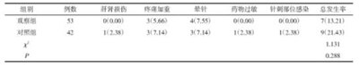 选取我院2016年1月至2017年12月收治的腰椎间盘突出症患者95例,根据随机原则结合患者意愿分为对照组(42例)和观察组(53例)。对照组由29名男性和13名女性组成,年龄20-65岁,平均年龄(41.28±10.11)岁。病程3个月至5年,平均年龄(1.36±0.65)岁。观察组男性32人,女性21人,年龄22-67岁,平均年龄(41.69±9.85)岁。病程4个月至6年,平均年龄(1.57±0.72)岁。两组患者的焦点位置见表1。所有患者意识清醒,精神系统正常,无肝肾等重要器官严重疾病,无血液系统疾病,无肿瘤,无免疫系统疾病,无传染性疾病。两组总体数据无显著性差异(P>0.05),具有可比性。